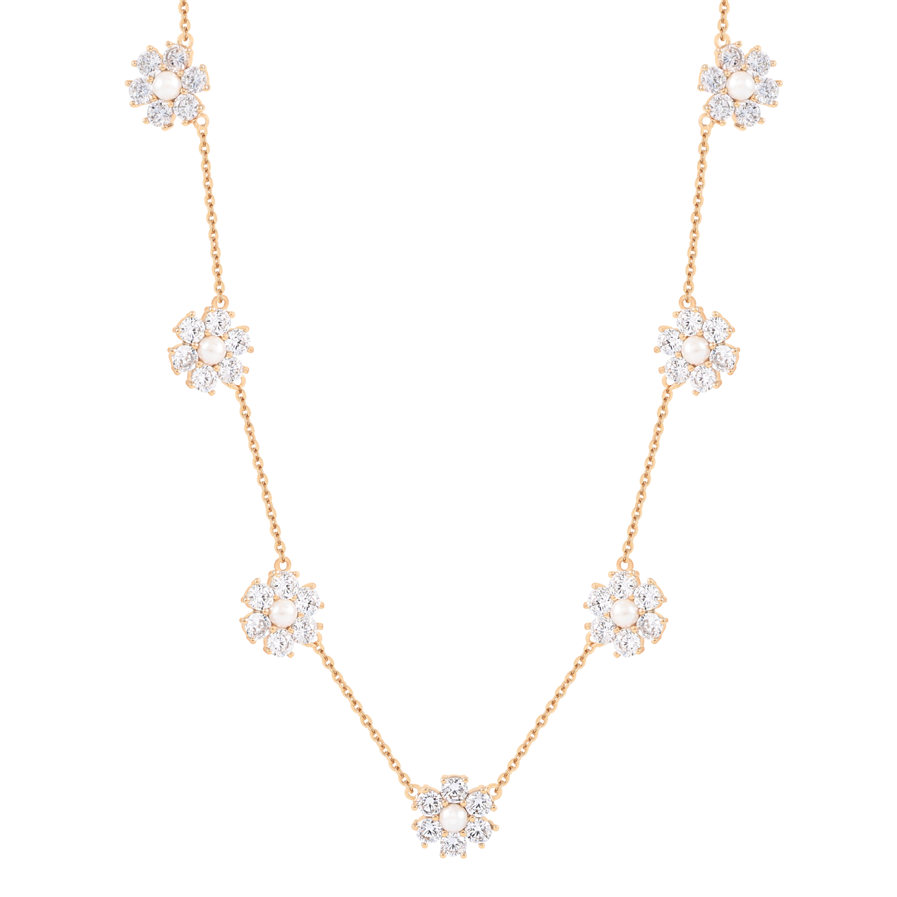 Daisy CZ Pearl 7 Daisy Necklace – Gold | Daisy Collection