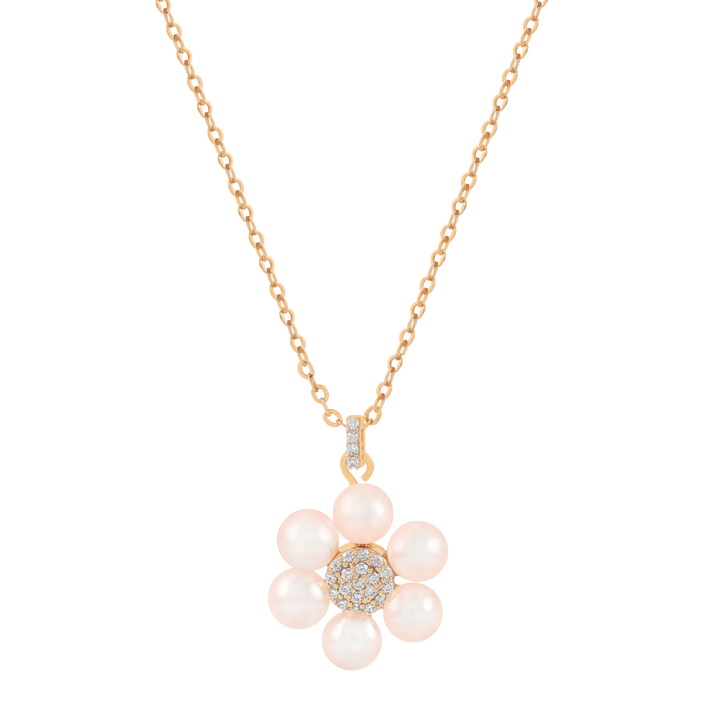 Delicate and radiant, the Daisy Pink Pearl Pendant Necklace is a beautiful expression of femininity from the Daisy Collection. Inspired by nature’s most joyful bloom, this necklace combines the soft blush of pearls with the sparkling brilliance of cubic zirconia for a truly elegant piece.